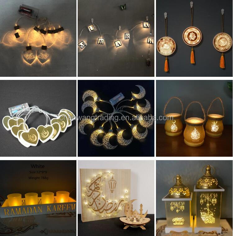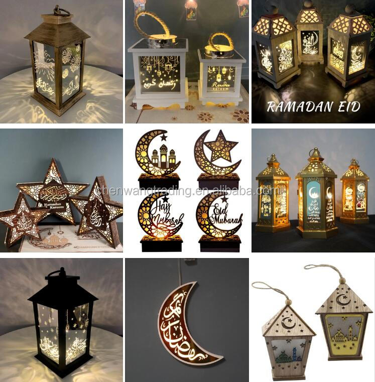 New Eid Mubarak Ramadan Festival Decoration Eid Wooden Led Table Lamp Table Decoration Lantern Decoration Muslim Ramadan Wind Lamp