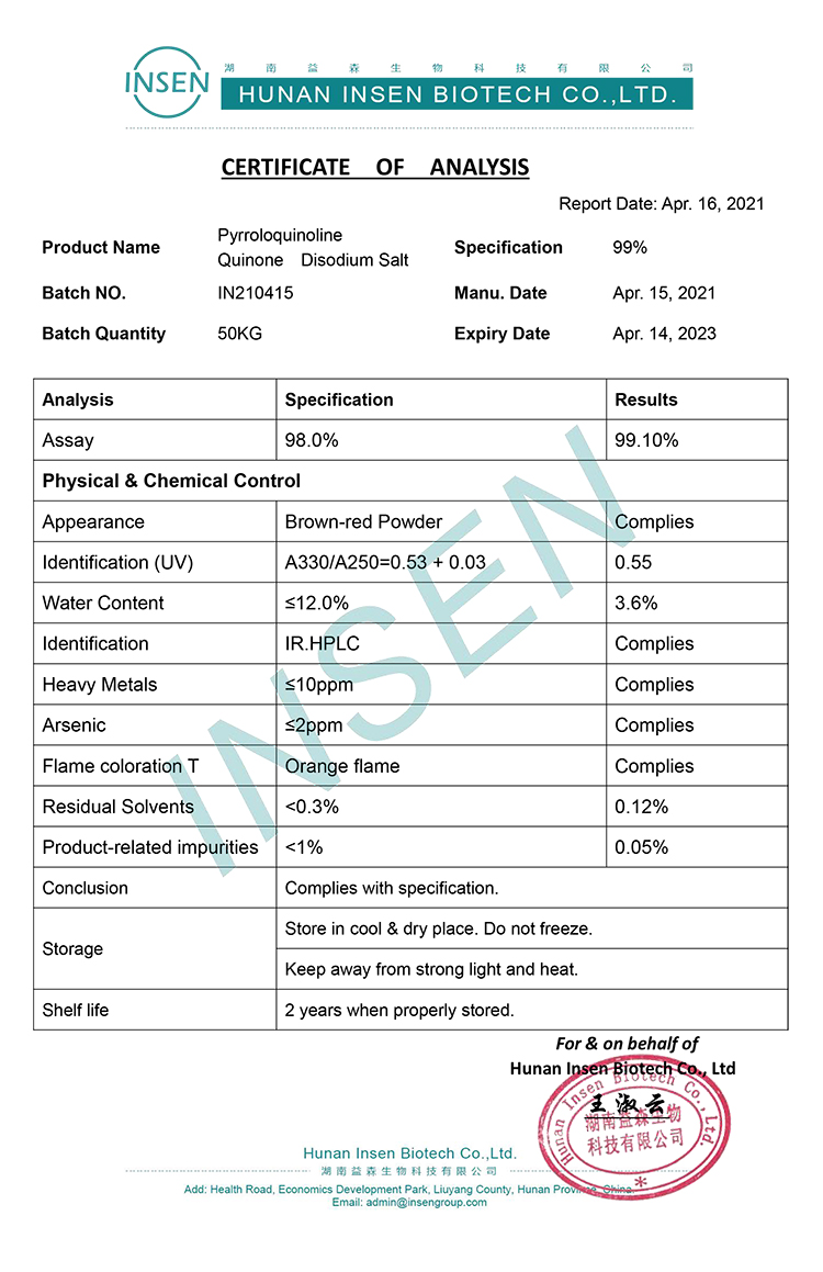| manufacturer: | Insen Biotechnology | model: | IN-PQQ salt |