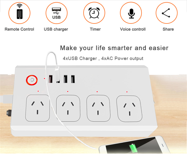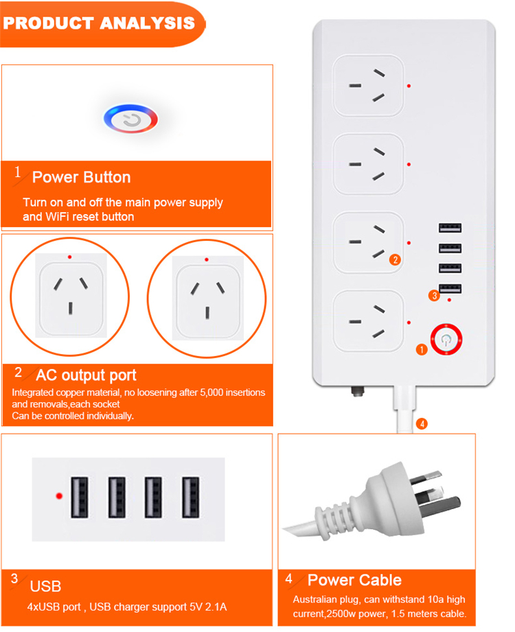 | * Rated power: 2000W(10A) / USB total power: | 5V 2.1A |