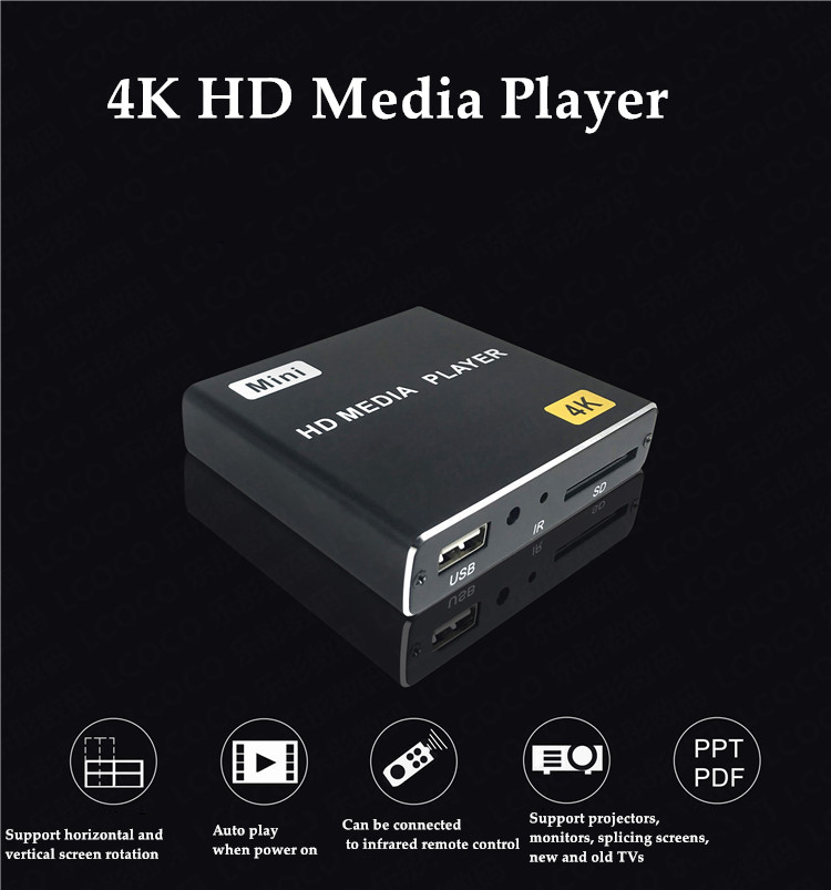 New auto-play mini 4K media player supports USB disk SD card HDD multimedia full HD 1080P video music PPT MP4 advertising player box