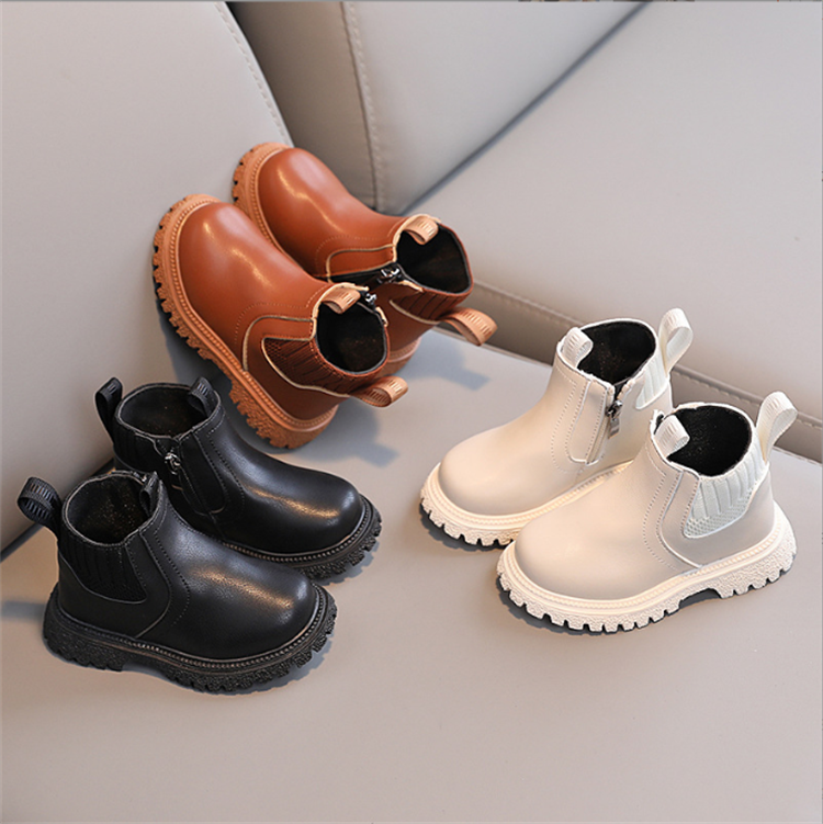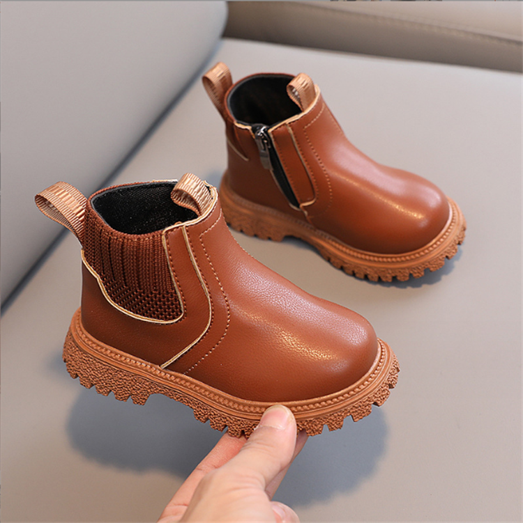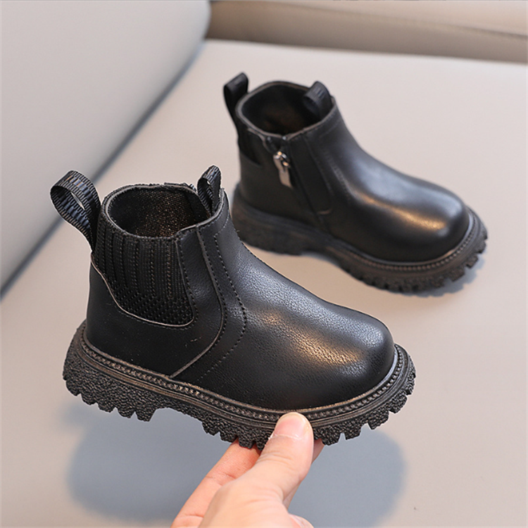 New children's fashion British style ankle boots boys side zipper fashion leather shoes