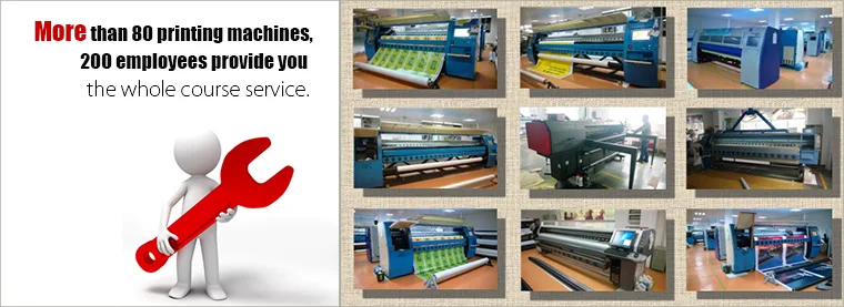 | We are mainly specialized in vinyl banner, polyester banner,stickers, roll up banner, X banner, Body advertising sign / pvc foam , pop up display, flying flags ,UV flat printing etc. | |