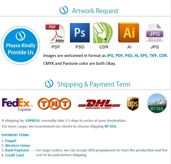 Images are welcomed in format as JPG, PDF, PSD, AI, EPS, TIFF, CDR. CMYK and Pantone color are both Okay.