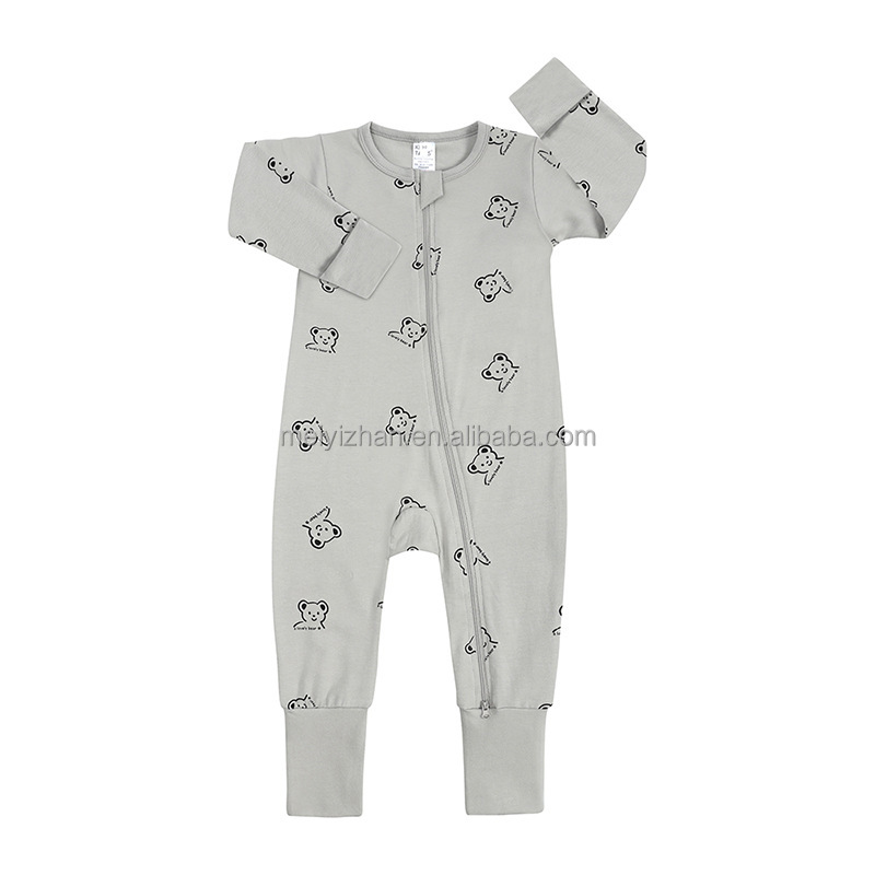 New hot selling custom baby clothes long sleeve 95% bamboo fiber viscose 5% spandex newborn baby jumpsuit blank zipper baby jumpsuit
