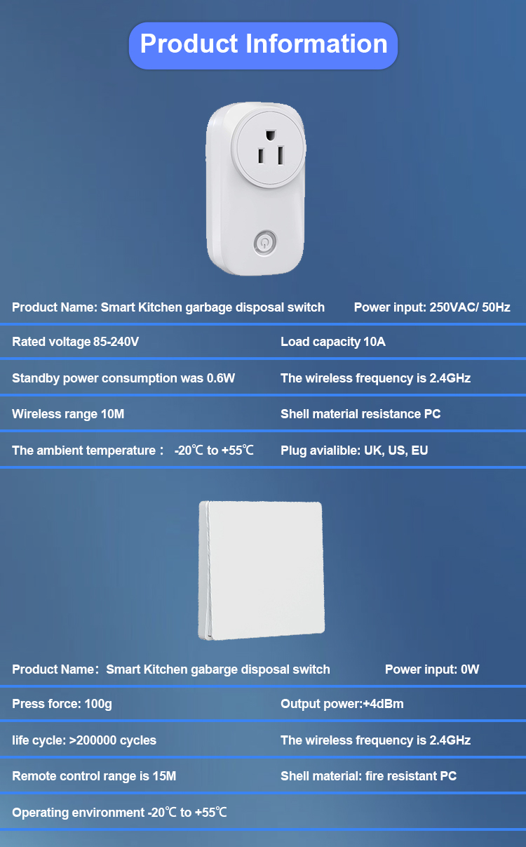 | product name: | Smart Kitchen Waste Disposal Switch | Operating environment: | -20°C to +55°C |
