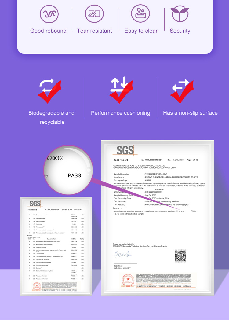 Eco-friendly, recyclable, waterproof, non-slip, non-toxic, comfortable |