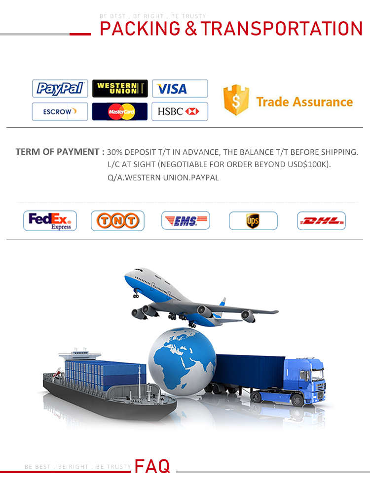 | Shipping | Fedex, DHL, UPS, by sea, by air |