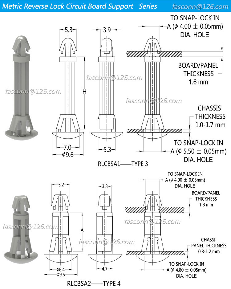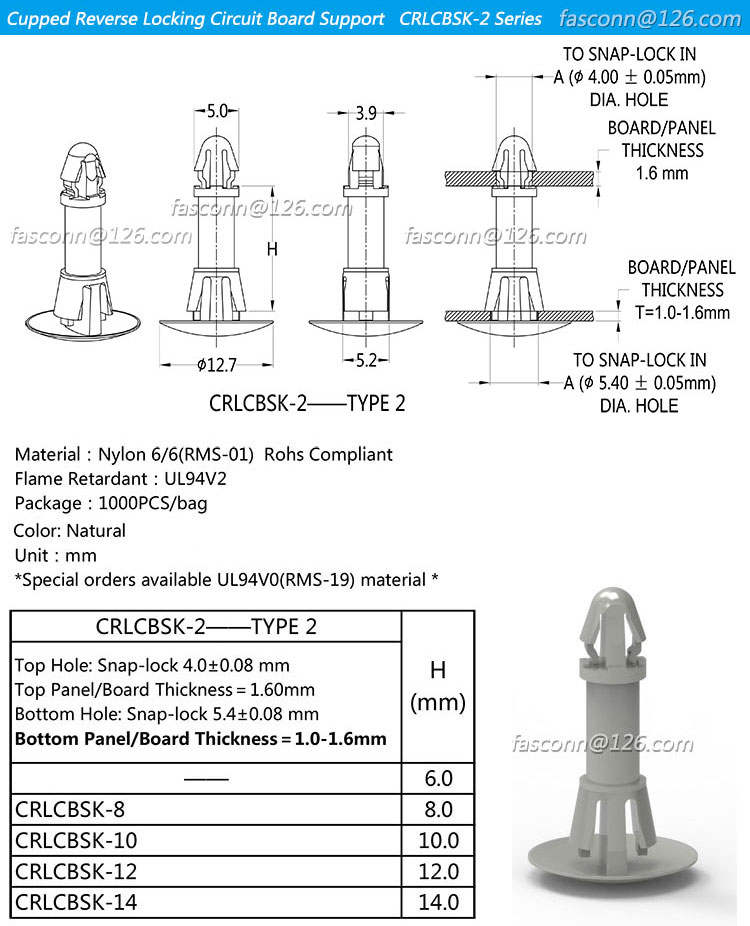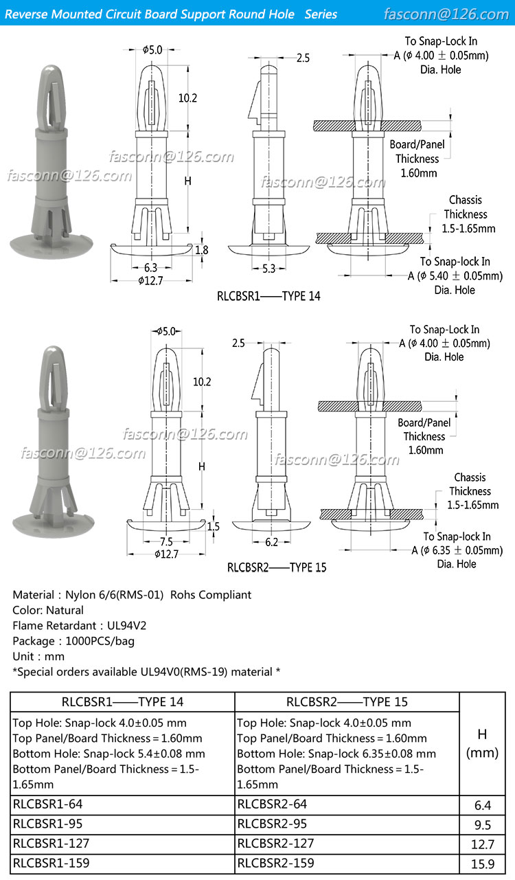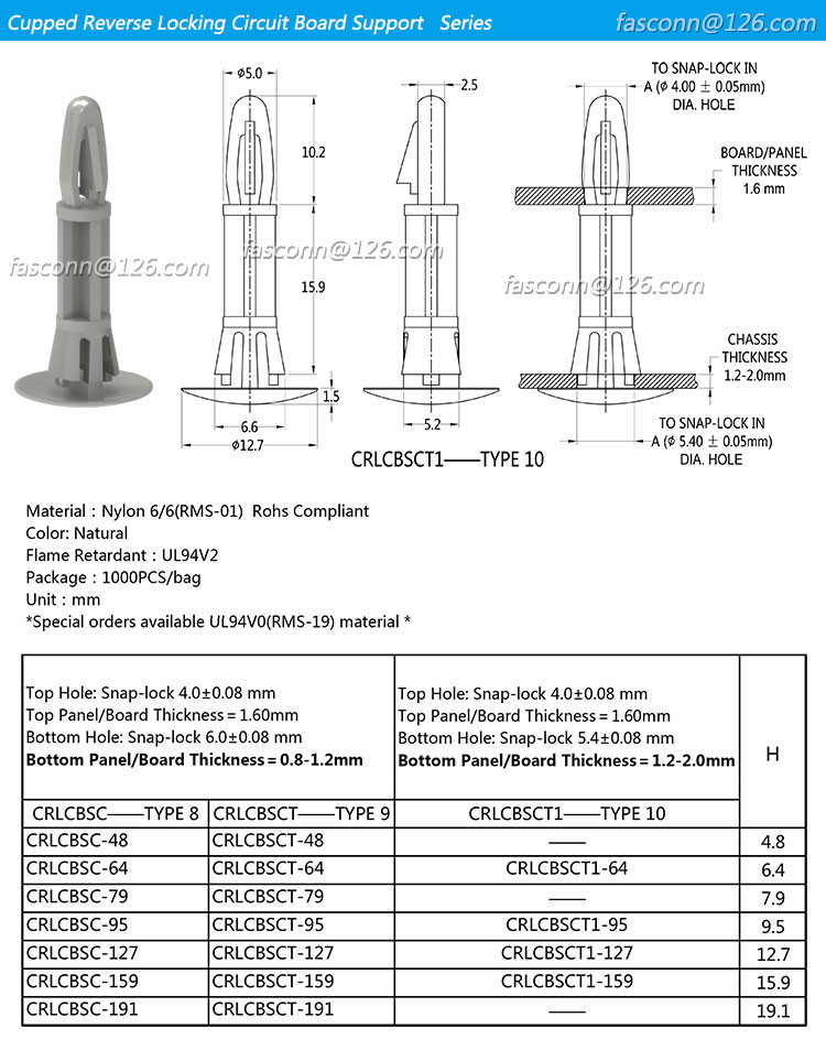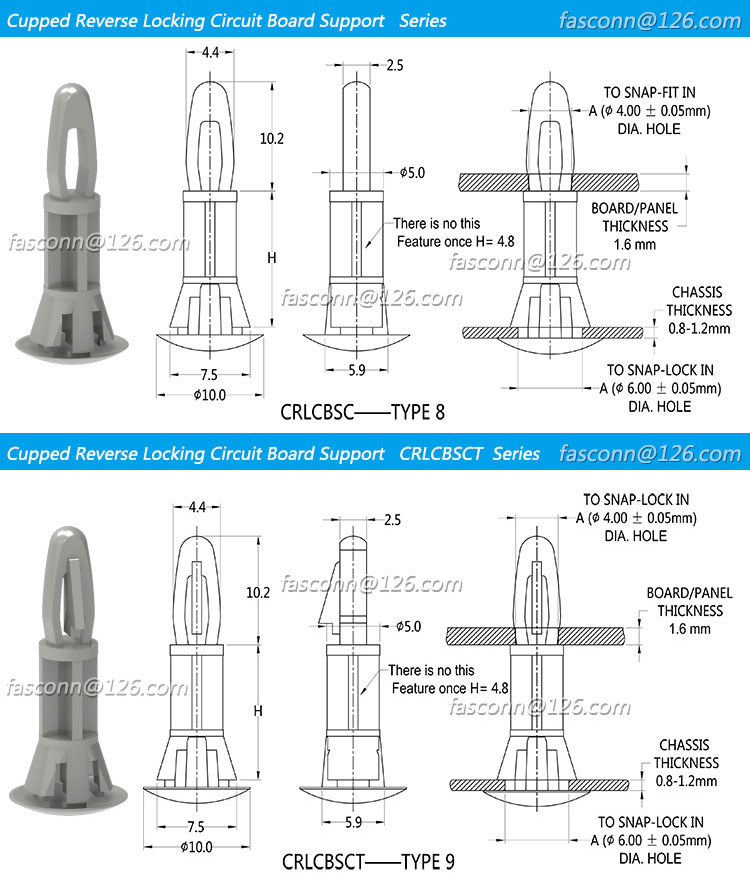 Nylon Cup Reverse Mount Locking Board Support Post for Round Holes, Heavy Duty PCB Holder, RLCBS
