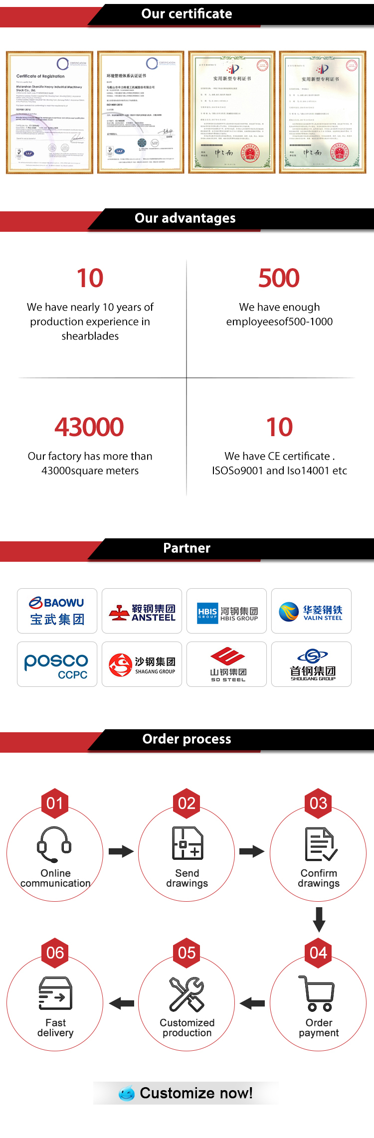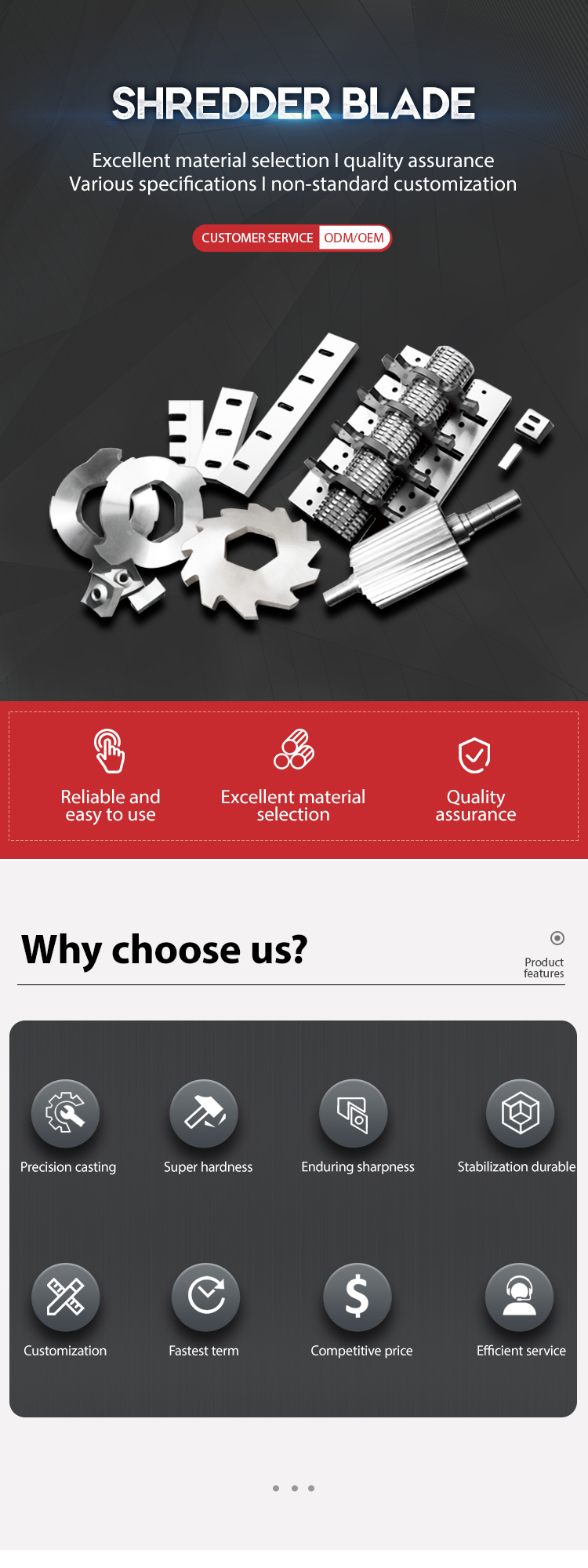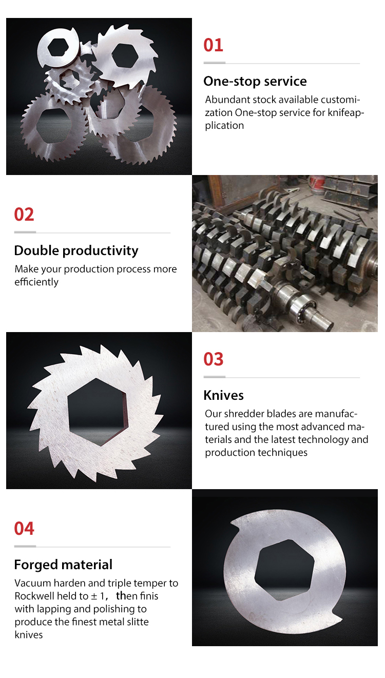 8. We can provide single-shaft shredder blades, double-shaft shredder blades, four-shaft shredder blades and horizontal shredder blades