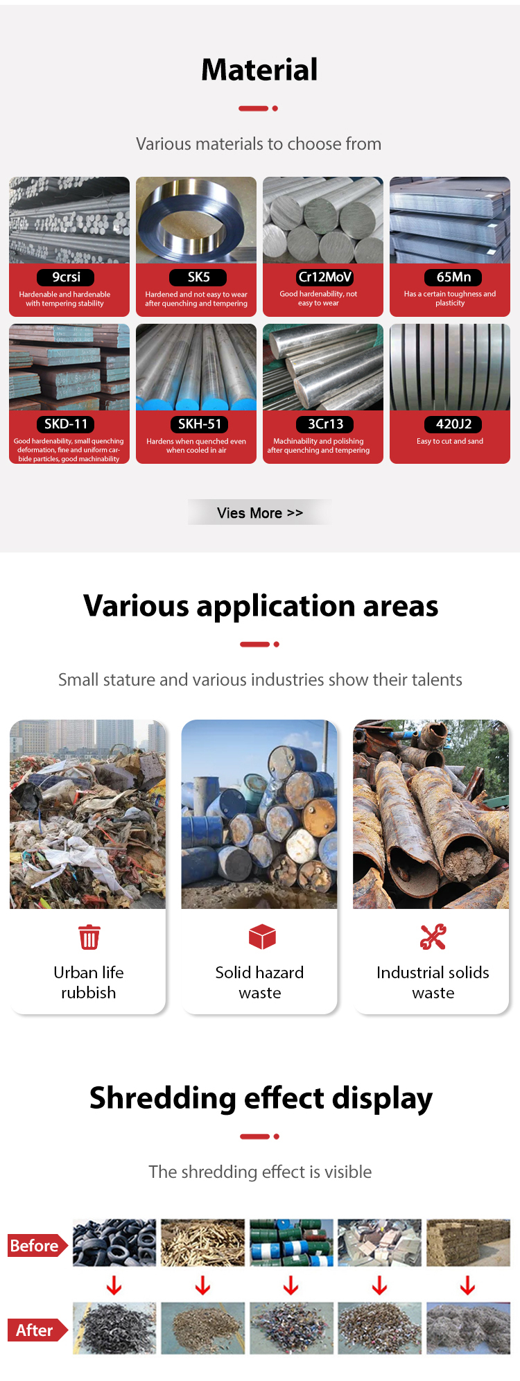 | application | Shredder blades for plastic, rubber, metal, waste recycling, etc. |