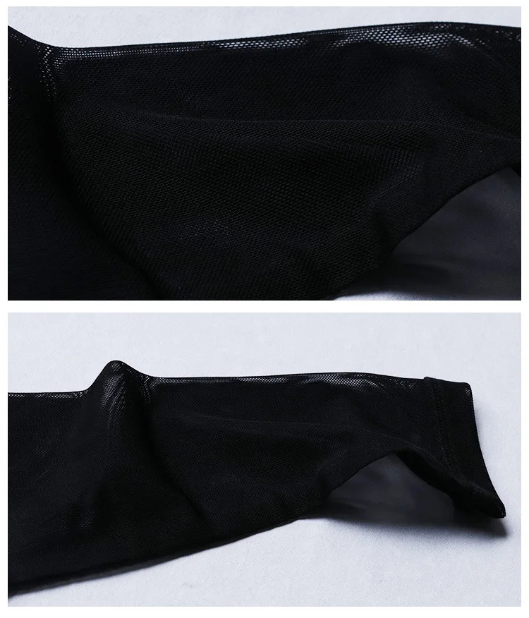 Long sleeve mesh open back leotard features a sheer bodice and open back so you can make an impression at convention or competition. Makes a statement on its own, but makes a quality base for your custom embellishments like appliques. Perfect for contemporary routines for your solo or large group.