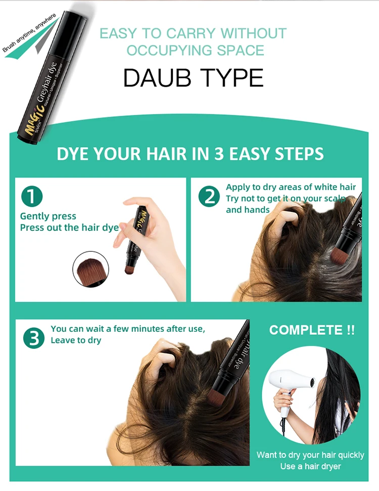 | Form: | hair dye pen; | Product name: | OEM colorful makeup hair root touch up hair dye brushes pen stick; |