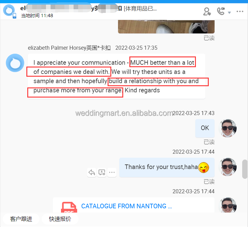 2. We respect every customer and regard them as our friends. No matter where they come from, we sincerely do business and make friends with them.
