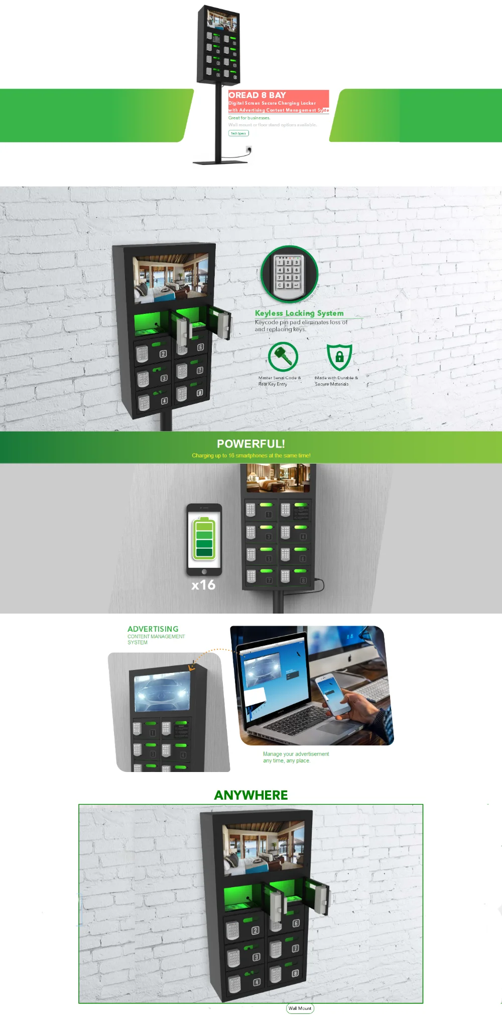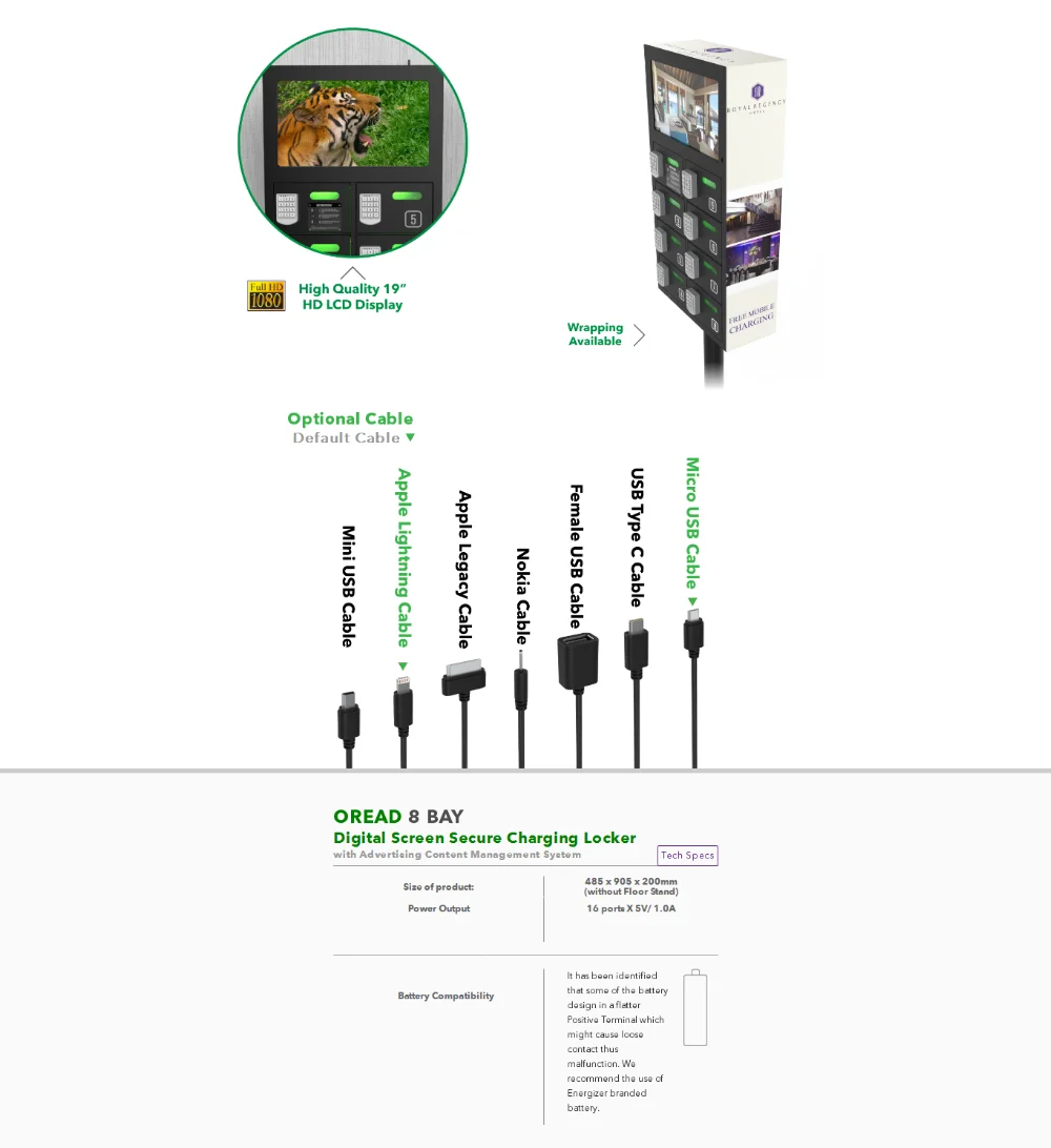 OREAD 8 BAY Video Secure Mobile Phone Charger with credit card reader for contact less payment