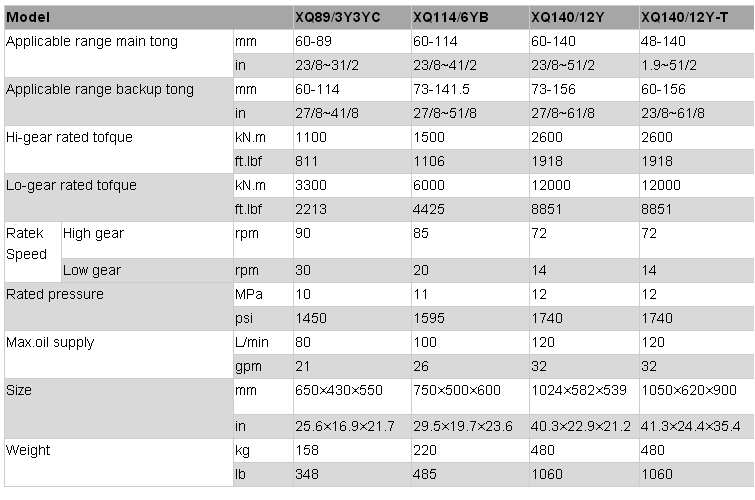 1. This series of hydraulic power tongs adopts an internal cam roll-up clamping mechanism, with hydraulic backup tongs.