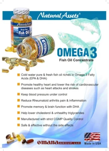 According to the AHA (American Heart Association), intake of deep sea cold-water Fish Oil Capsules 1000, with high level of fatty Acids (EPA & DHA) may help reduce the risk of coronary heart disease. Our best omega 3 fish oil in buk offers a convenient way to provide your body with its daily requirement of omega-3 fatty acids (EPA & DHA).