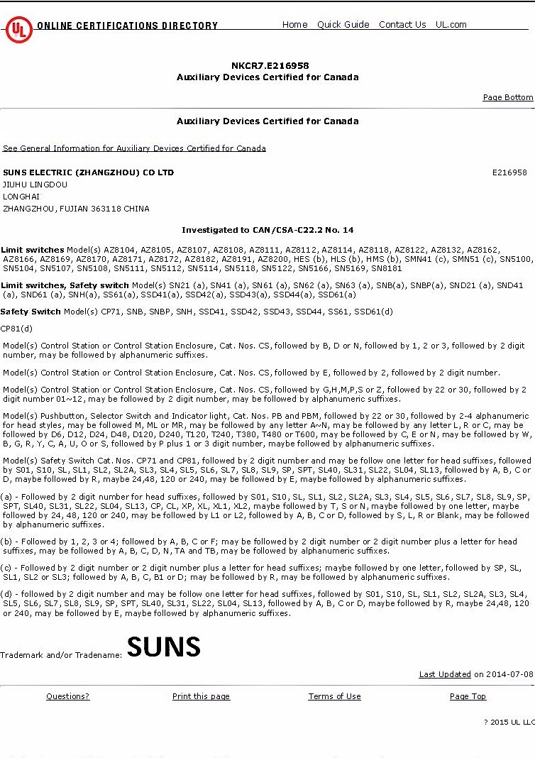 For over 25 years, SUNS has been supplying world-class electromechanical and electrical components to customers worldwide. We offer a broad product line that is critical to your application. Our focus revolves around obtaining accurate and reliable components and the most competitive prices for our customers. Our manufacturing facility is ISO9001:2008 compliant and all our products are certified to UL.CSA, CE and CCC standards