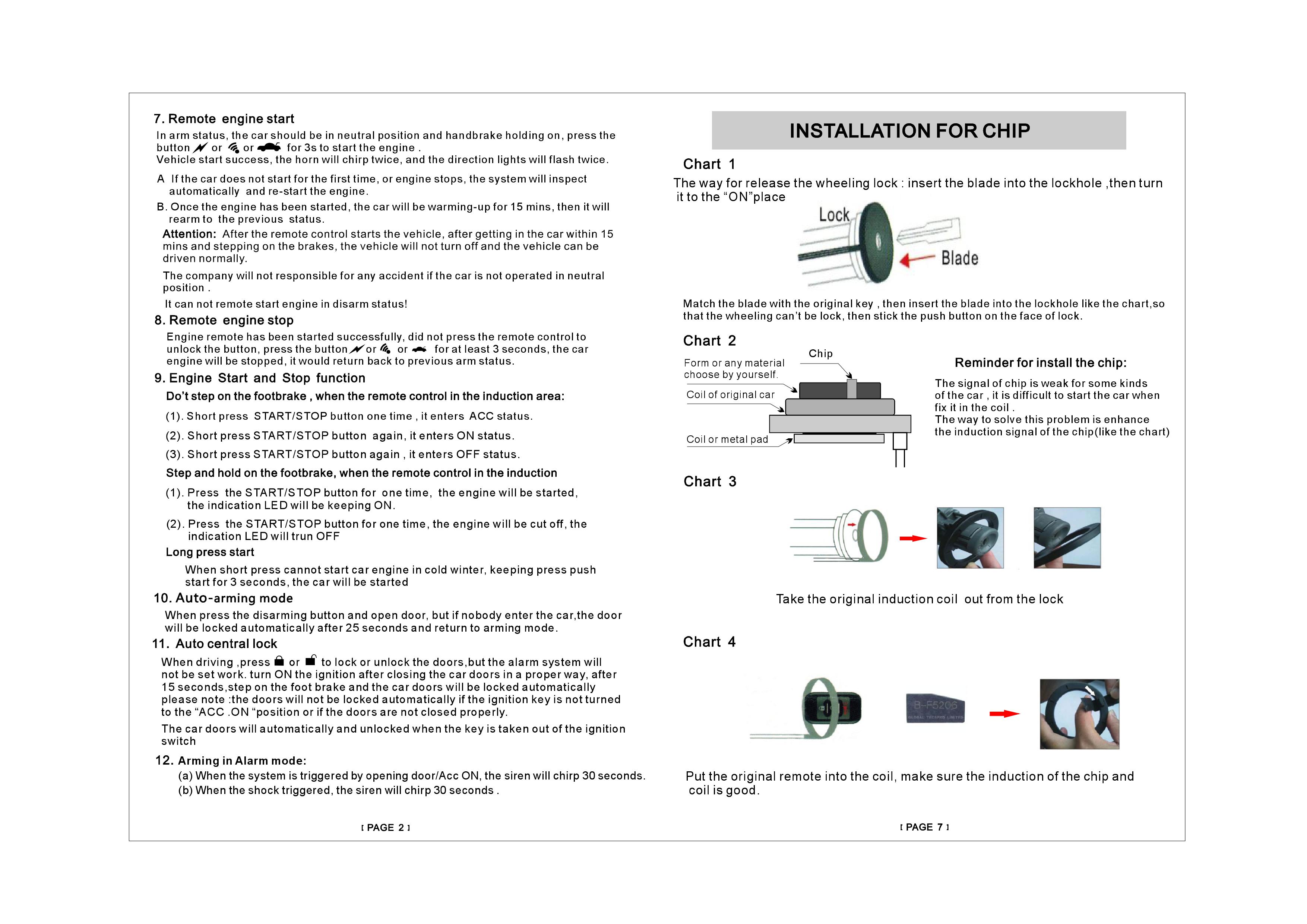 | usage: | Activate the car alarm system | feature: | Improve security |
