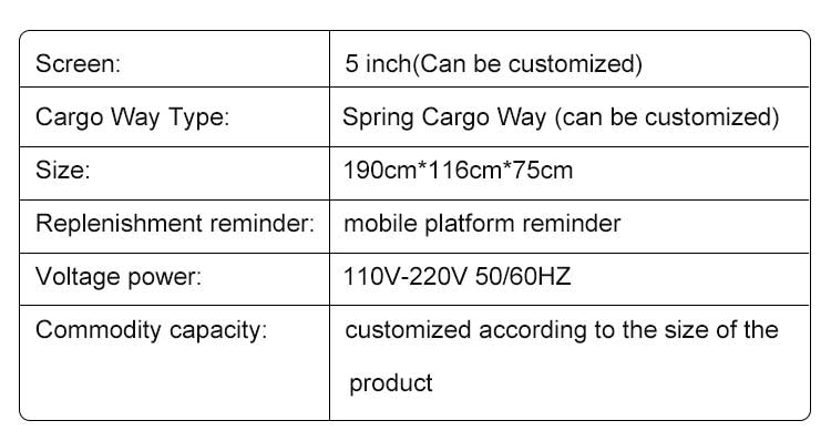 | product name: | Combination vending machine | aspect: | H1900mm*W1160mm*D750mm |