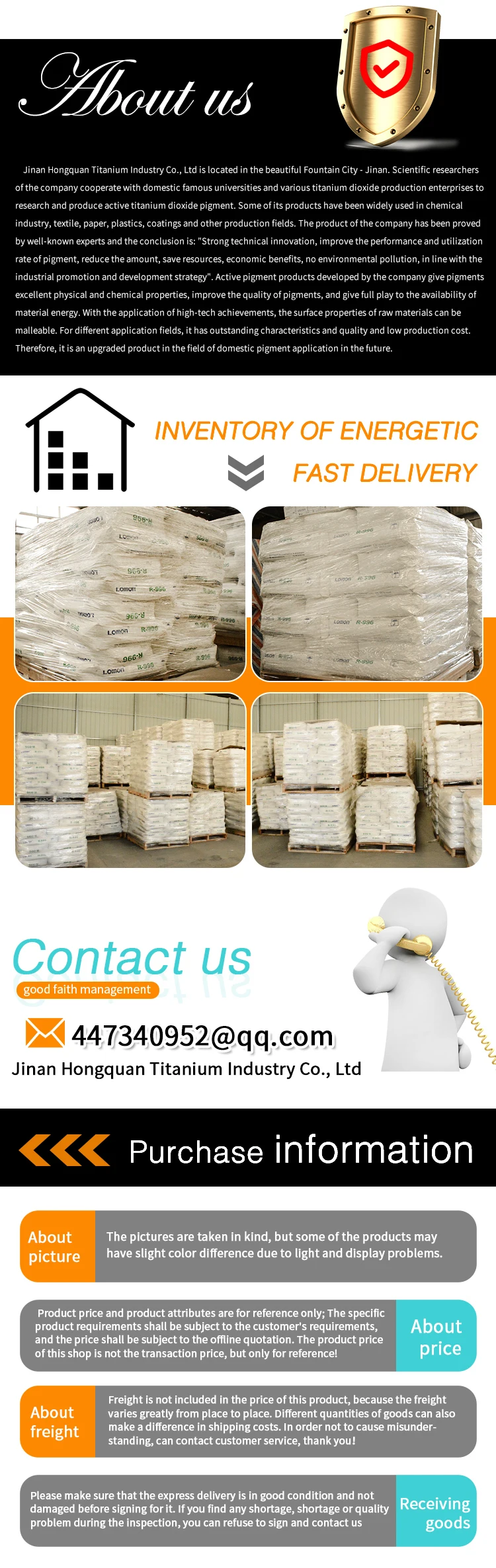 Jinan Hongquan Titanium Industry Co., Ltd is located in the beautiful Fountain City - Jinan. Scientific researchers of the company cooperate with domestic famous universities and various titanium dioxide production enterprises to research and produce active titanium dioxide pigment. Some of its products have been widely used in chemical industry, textile, paper, plastics, coatings and other production fields. The product of the company has been proved by well-known experts and the conclusion is: "Strong technical innovation, improve the performance and utilization rate of pigment, reduce the amount, save resources, economic benefits, no environmental pollution, in line with the industrial promotion and development strategy". Active pigment products developed by the company give pigments excellent physical and chemical properties, improve the quality of pigments, and give full play to the availability of material energy. With the application of high-tech achievements, the surface properties of raw materials can be malleable. For different application fields, it has outstanding characteristics and quality and low production cost. Therefore, it is an upgraded product in the field of domestic pigment application in the future.