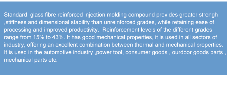 polyamide 66, reinforced with 35% of glass fiber, heat stabilized, for injection moulding. This grade has been specially designed to improve its resistance to automotive cooling liquids, increasing lifetime of parts in permanent contact with such a liquids