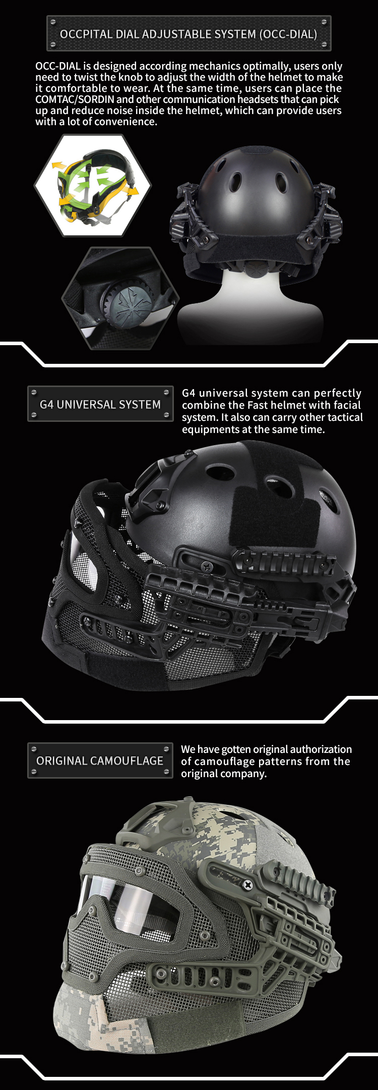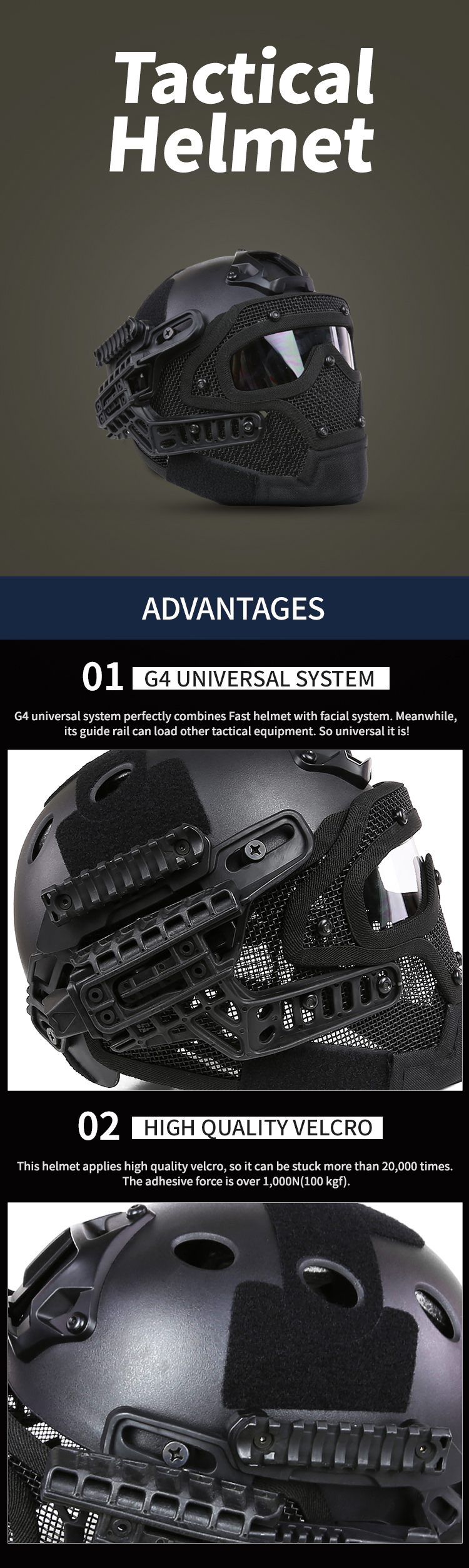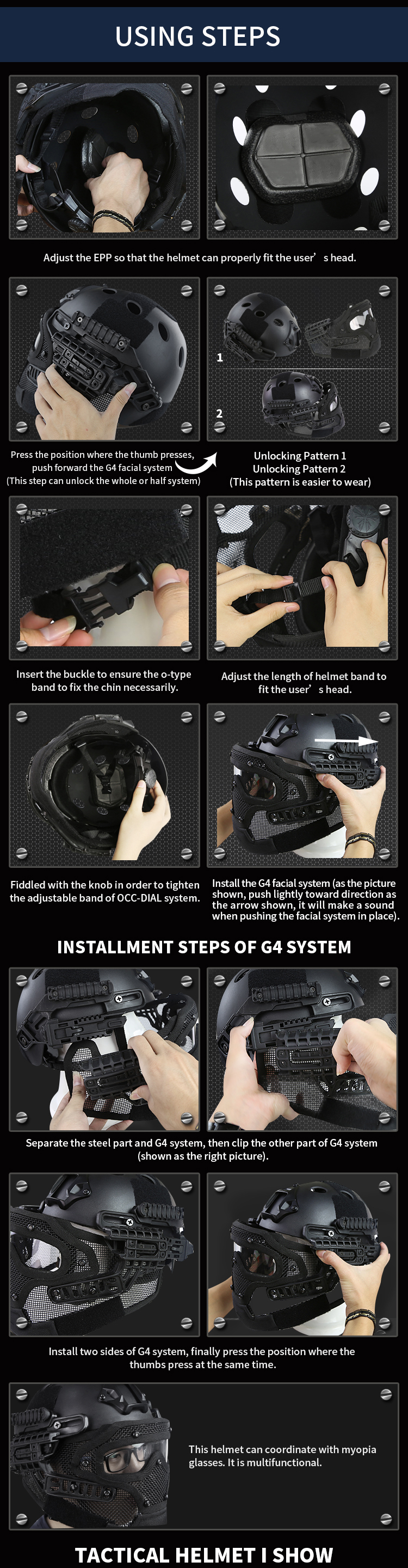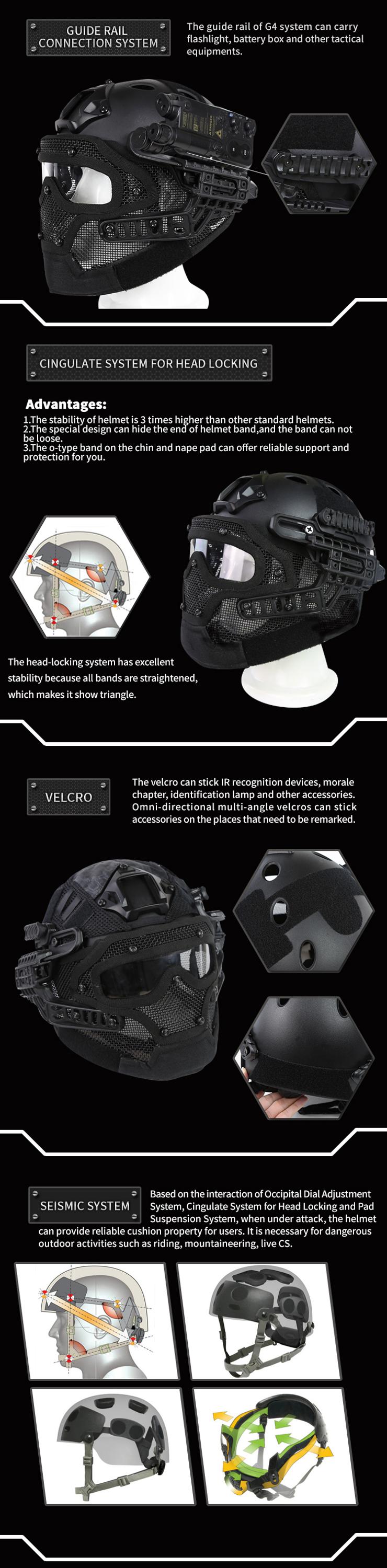 | describe: | One main helmet, one set of accessories, one set of G4 system, one set of facial system |