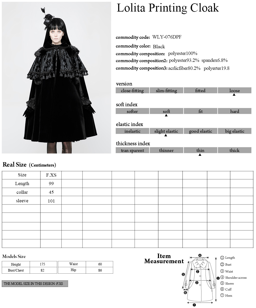 WLY-076DPF PUNK RAVE Lolita style hooded cosplay cloak cape coat