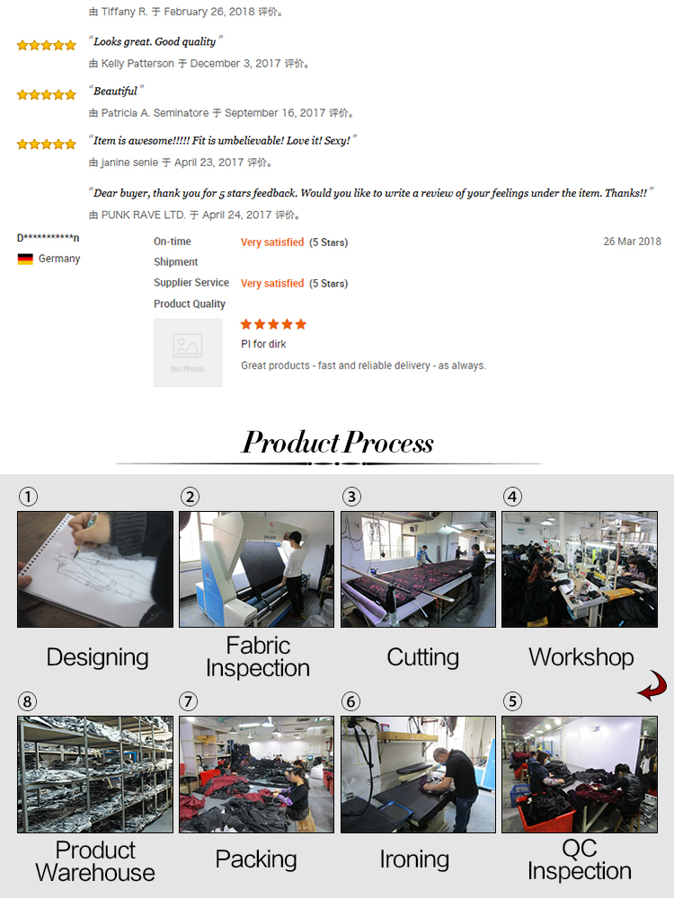 Guangzhou Ruier Clothing Co., Ltd.Established in 2006, we are the earliest well-known brand of PUNK, GOTHIC, LOLITA style of Asian design clothing in China. We specialize in clothing design, production and sales. We have our own design team, factory and professional foreign trade team.