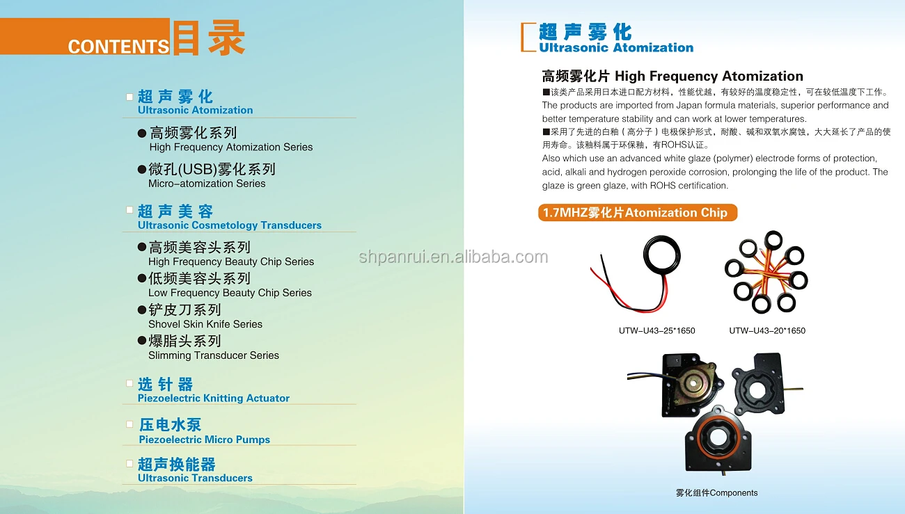| Diameter: | 5~80mm; | Frequency: | 1.7MHz/1.4MHz/3MHz/113KHz/108KHz/customized; |
