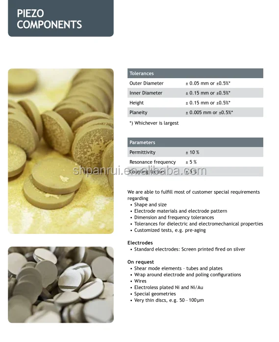 | Product Name: | piezo element; | Resistivity: | 81-85/70-80/30-39/0.8-1.0/0.6-0.8; |