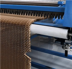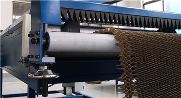 This machine is used for expanding the diameter of paper honeycomb core. It includes two heating chambers that expand without shrinking. It has a crosscut and can also have a slitting blade inside if desired. The number of blades can be customized. This machine is widely used by door manufacturers.