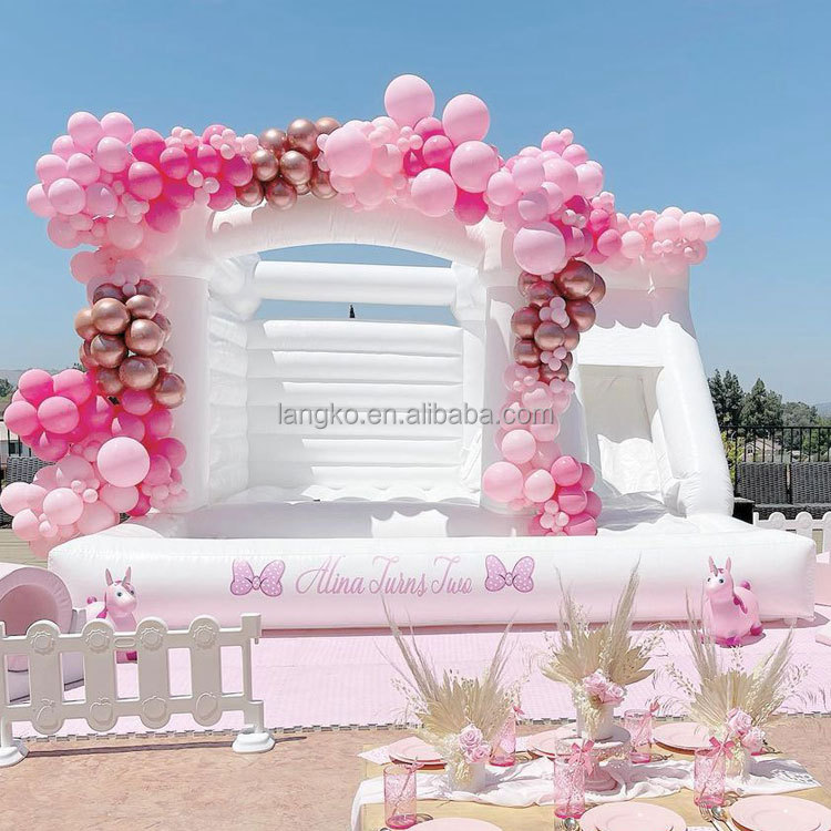 Party Rental White Bounce House Bouncy Castle Slider Pit for Kids Adult Jumping
