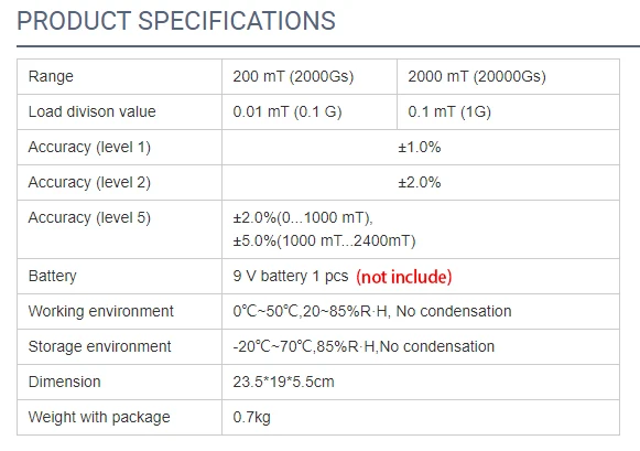 1.Three types of accuracy: Level 1, Level 2 and Level 5 for different magnetic field measurement situations.