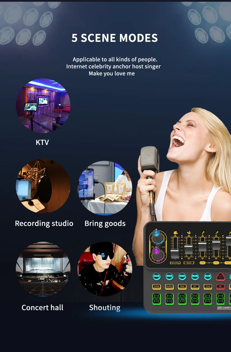 Personal Entertainment Microphone Webcast Streamer Live Broadcast External Audio USB Sound Card for PC Phone Computer
