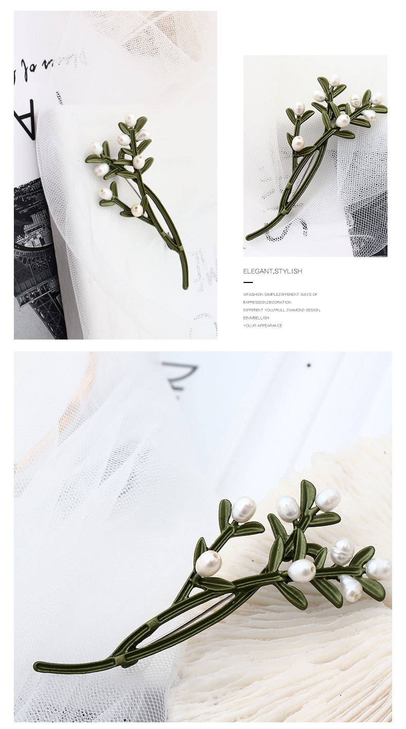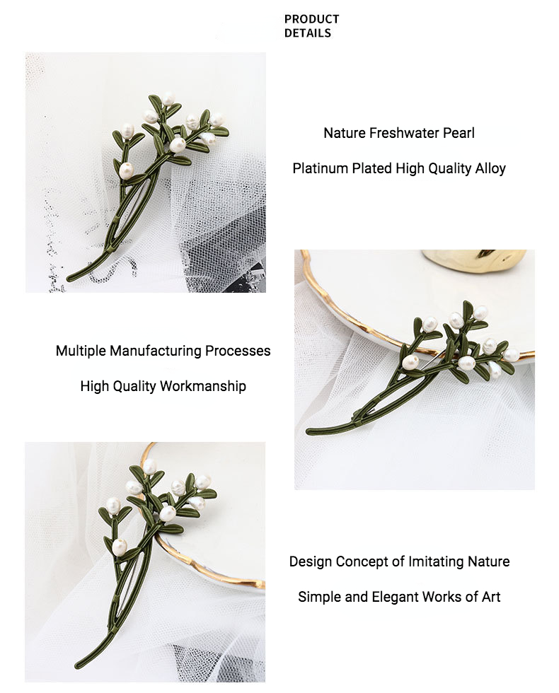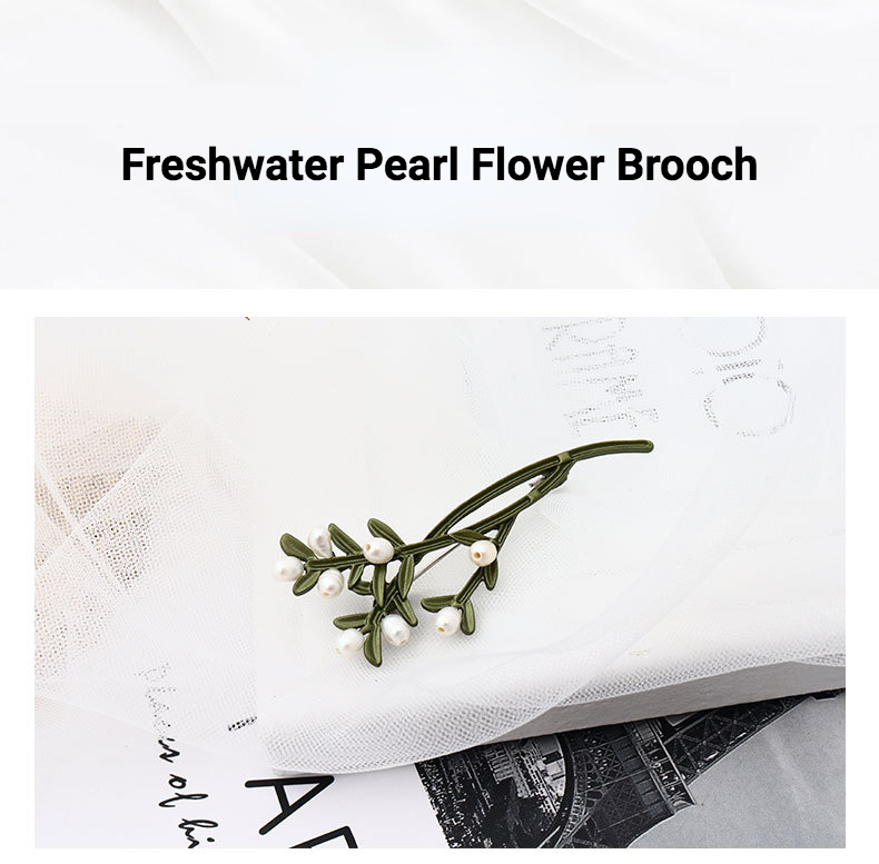Personalized Natural Freshwater Pearl Flower Brooch Simple Platinum White Flower Brooch Alloy Green Ink Brooch