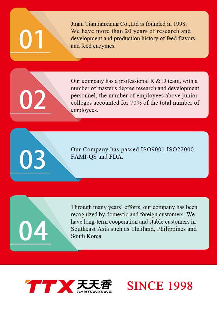 Thermostable phytase is a highly efficient 6-phytase. Feed ingredients contain a certain amount of phosphate. However, the phosphorus in plant phosphates is generally less digestible than the inorganic phosphorus added to the diet. TTX thermostable phytase greatly breaks down phosphate, releasing plant phosphorus and reducing feed costs and environmental impact.