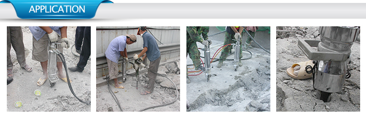 The cylinder rock splitter can break rocks at an extremely fast speed, its work needs to be drilled with a DHT hammer drill first, and then the splitting rod can be inserted into the pro hole, and the cracking time is within 1 minute.