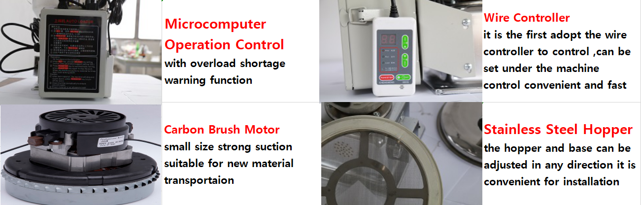 The 300G type adopts a high-speed rectifier motor, which is small in size, light in weight and strong in suction. It can be directly placed on the dryer or other raw material containers to complete the automatic feeding work. Widely used in injection molding machines, blow molding machines, etc.