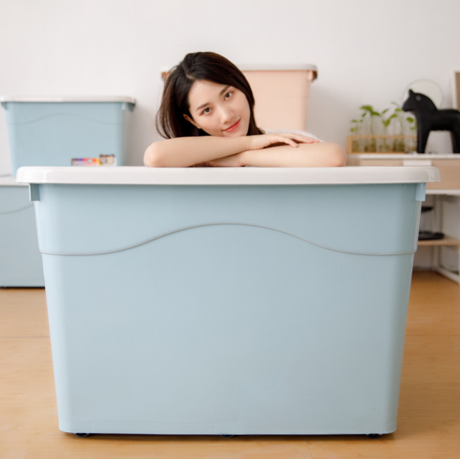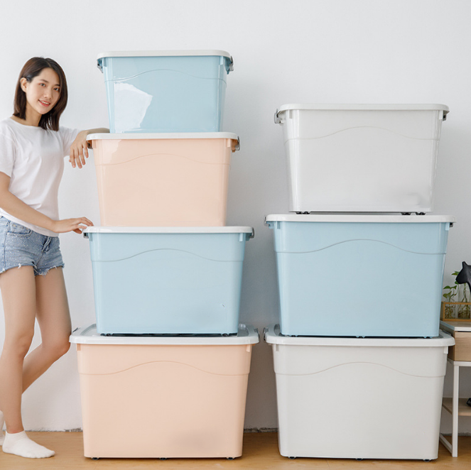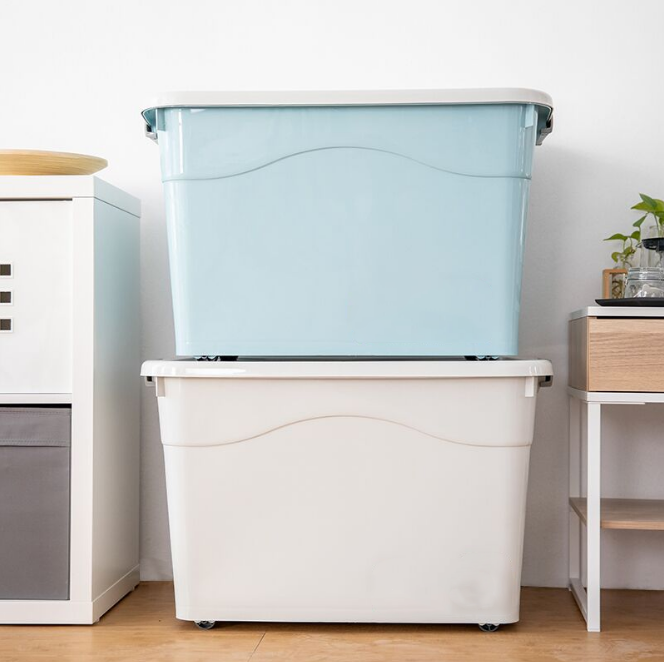 Plastic Storage Box Tote Bag with Wheels and Handle, Clothes Toys Lingerie Storage Box with Lid Storage Box