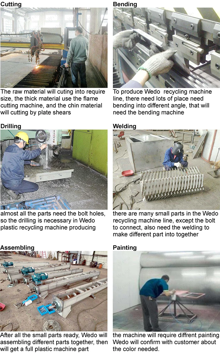 Wedo have a fully step for the Plastic film PE PP LDPE HDPE PP Soft Recycling Drying Plastic Squeezing Dryer producing before packing and shipping, this ensure the plastic recycling machine will delivery in good quality, and custerm will get good machine.