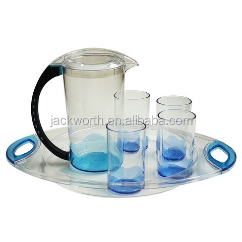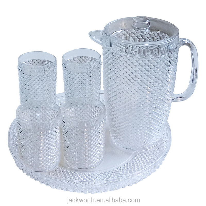 Pitcher & Tumbler & Tray Acrylic Pitcher Kit / Drinking Set Beverage Pitcher & Tumbler / Plastic Drinking Cup & Plastic Pitcher / Water Pitcher Set with Plastic Glasses / Beverage Pitcher & Drinking Tumbler / Plastic Pitcher Kit & 4 Glasses