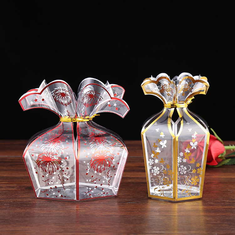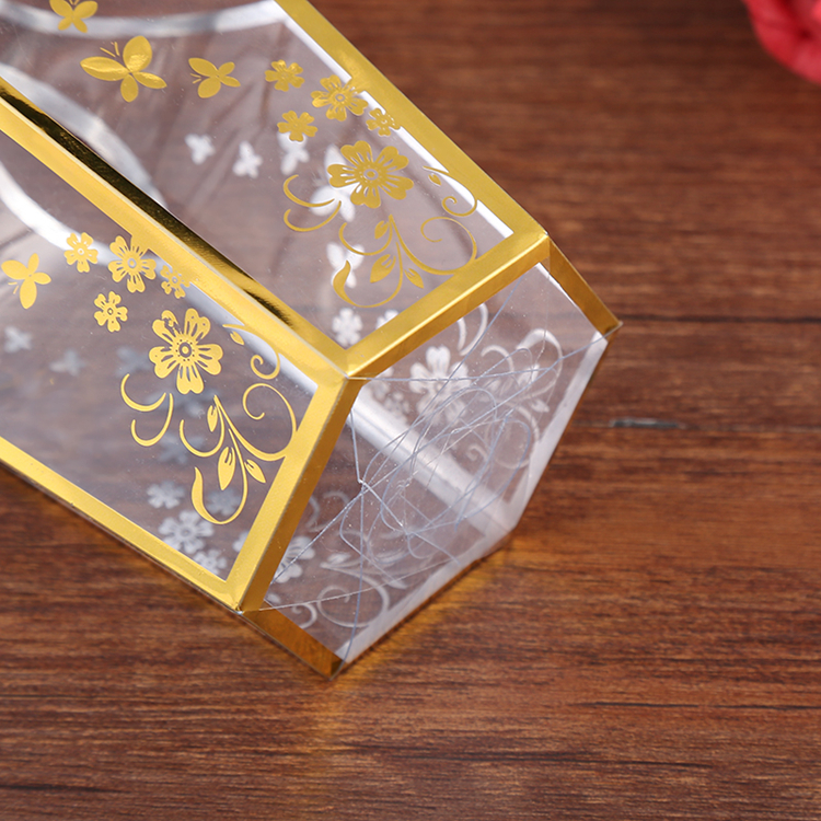 Popular Foil Stamping Gift Box Hexagonal Gold Foil Stamping Box PVC PET Plastic Candy Box