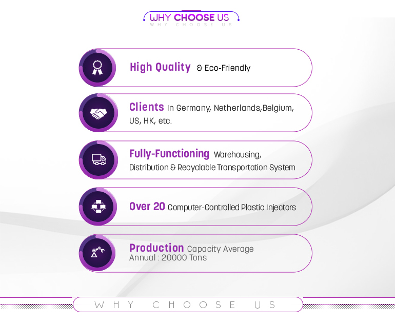 Ningbo Zhongyi Plastic Technology Co., Ltd is an expert manufacturer for plastic products and also a developer for moulds. We have been committed ourselves to the research,design and marketing of recyclable logistic package used products, enabling to replace the one-time package with recycling materials packaging system. We aim to provide high quality and eco-friendly products and super service to customers based both in China and overseas in terms of warehousing, distribution and recyclable transportation system.