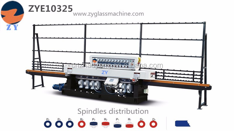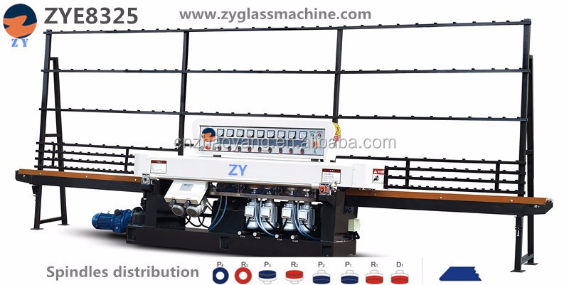 ZYE9325 Glass Linear Edge Grinding Machine is specially designed for straight edge or 45 angle grinding and polishing of flat glass of different sizes and thicknesses. Round grinding, polishing, and cornering can be completed at one time. Its speed can be widely adjusted with its stepless regulator. Very smooth speed change In the grinding operation, the feed speed and running speed can be adjusted arbitrarily. Font guides can be adjusted for different thicknesses of processed glass. With clamping, lubricating, voltage stabilizing and other automation systems, advanced structure, high precision, convenient operation and high work efficiency, it is one of the indispensable instruments for glass processing. Grinding wheel 9, designed for straight edge, rough, semi-rough, finish, edging, semi-finish, double-sided angle polishing and finish polishing.