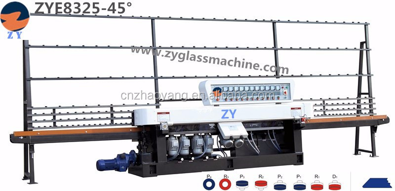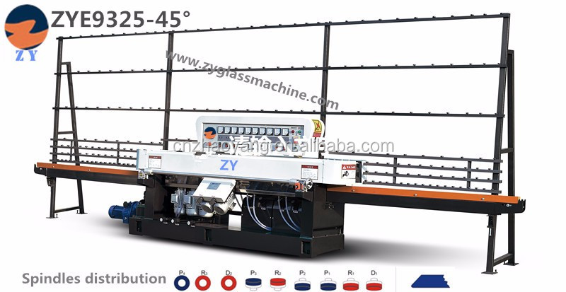 ZYE8325-45° Glass Linear Edge Grinding Machine (9 Axis)It is suitable for edging and corner grinding of flat glass of different sizes and thicknesses, rough grinding, fine grinding and polishing can be completed at one time. The polished grease surface is close to the finish of the glass substrate. When adjusting different processing thicknesses (refer to the front axle beam data display instrument), the front chamfering grinding head can move synchronously with the front axle beam, which has the advantages of advanced structure, high machining accuracy, convenient operation, and continuous processing. The thickness is the same, it is the necessary equipment for deep processing of glass.