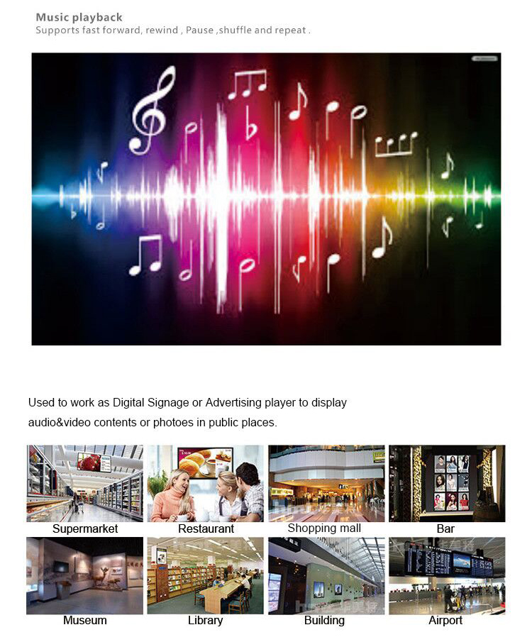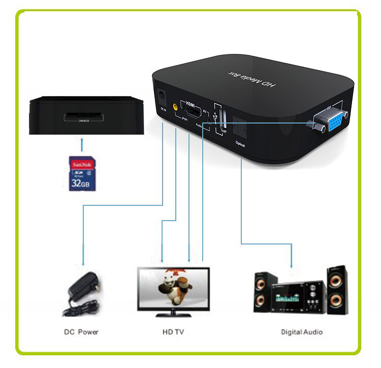 TV digital media player (HDMI, USB, SD, AV or VGA)