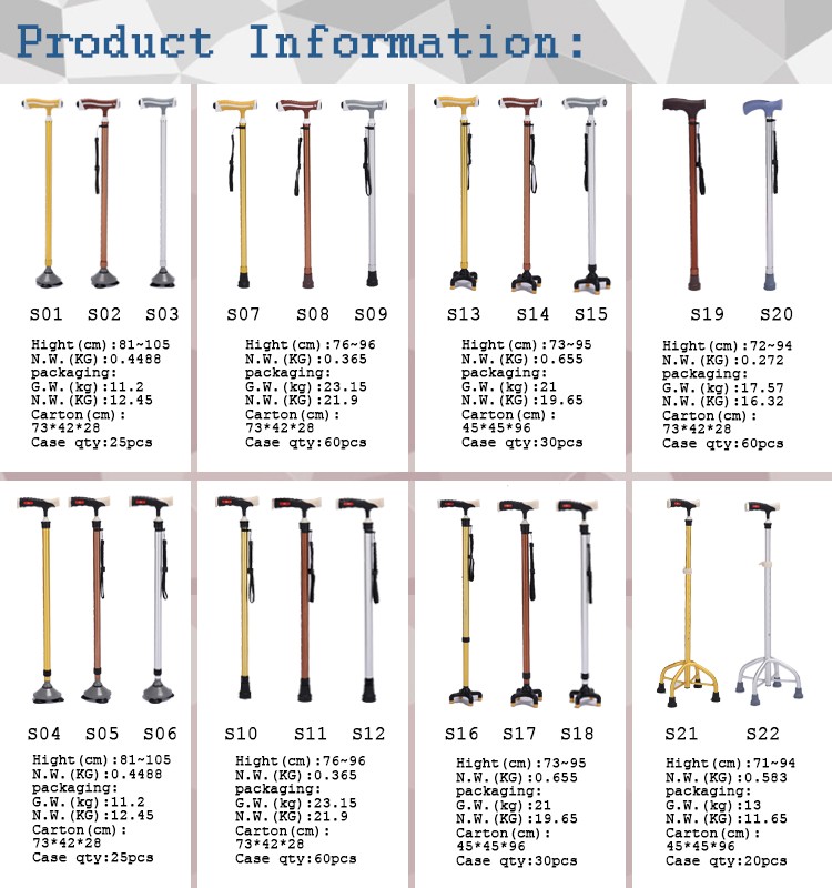 | usage: | help crutches | Packaging Details: | GW(kg):13 NW(kg):11.6 Carton size(cm):45*45*96 Number of boxes:20pcs |