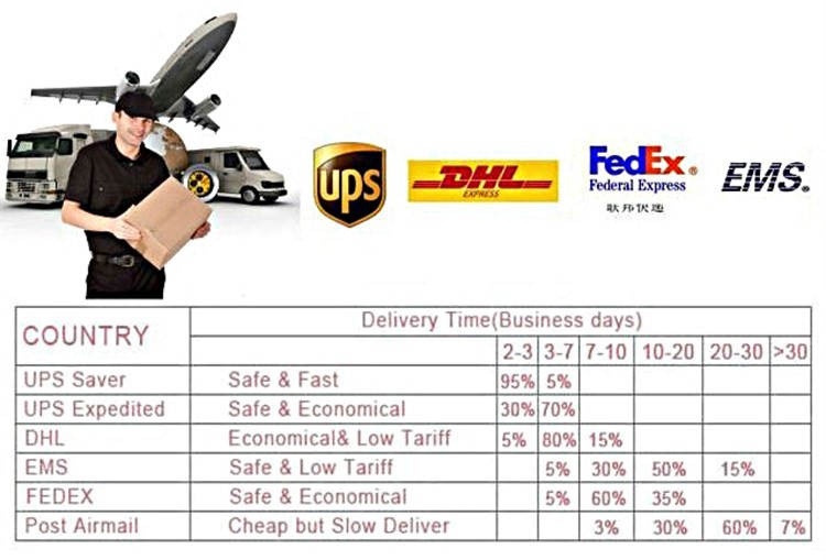 2. DHL, UPS, FedEx, TNT takes about 3-5 working days to deliver. EMS and Hong Kong Post are slower than this. It takes 10-15 working days for Hong Kong Post to send to the United States, and it may take 1 month to send to some countries.