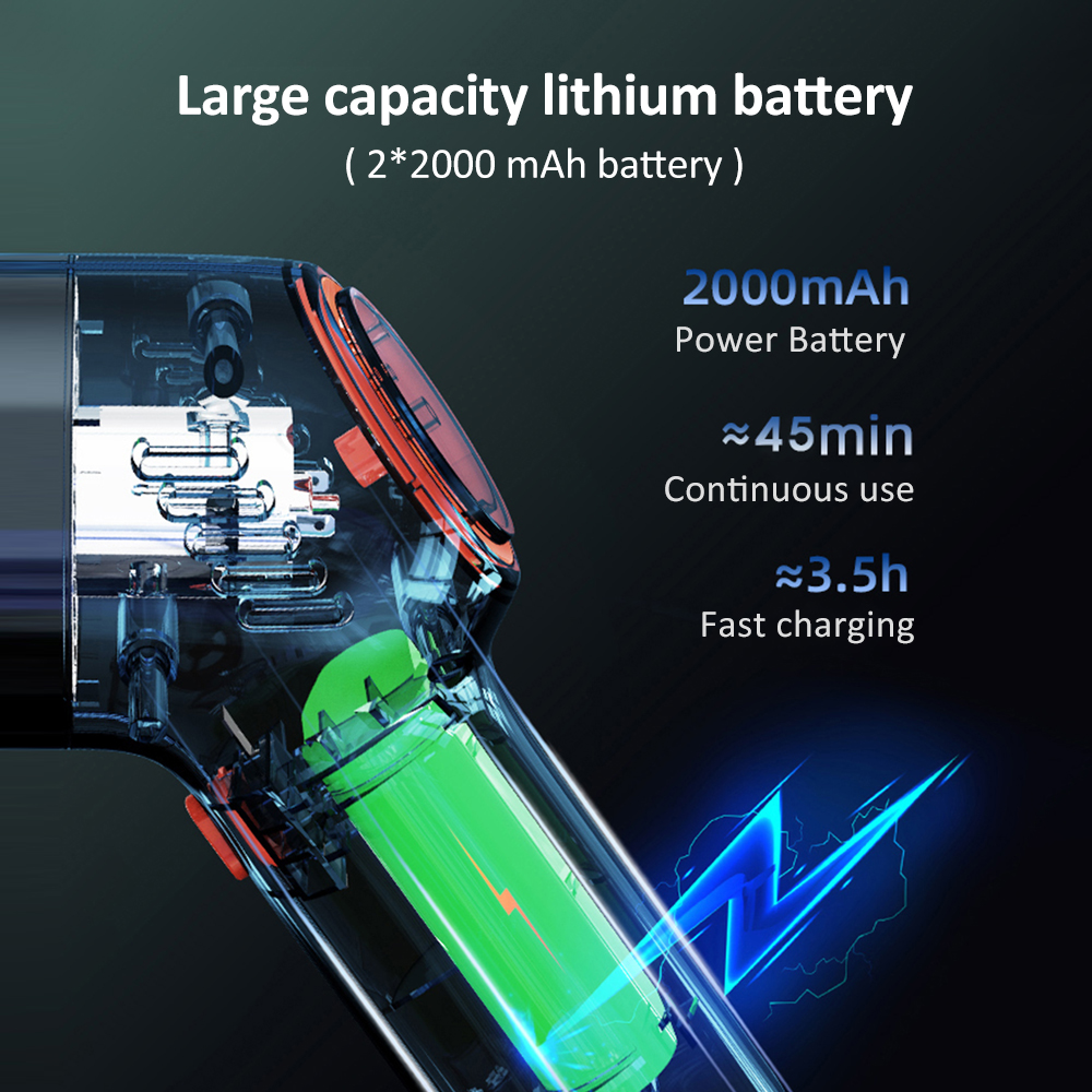 6. The large-capacity lithium battery allows this vacuum cleaner to be used continuously for about 45 minutes, and the standby time is up to 30 days.