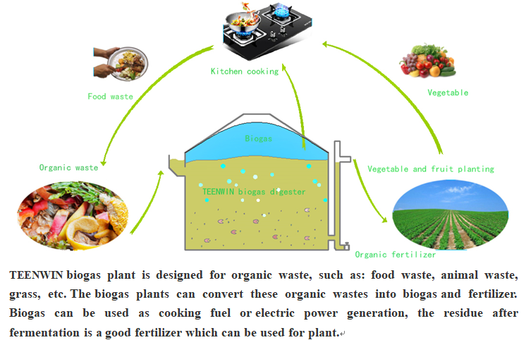 3. Environmental protection: no odor and waste discharge, the generated gas is collected for energy use; the residue produced by full fermentation has no peculiar smell, it is a top biological fertilizer and can be used for crops.